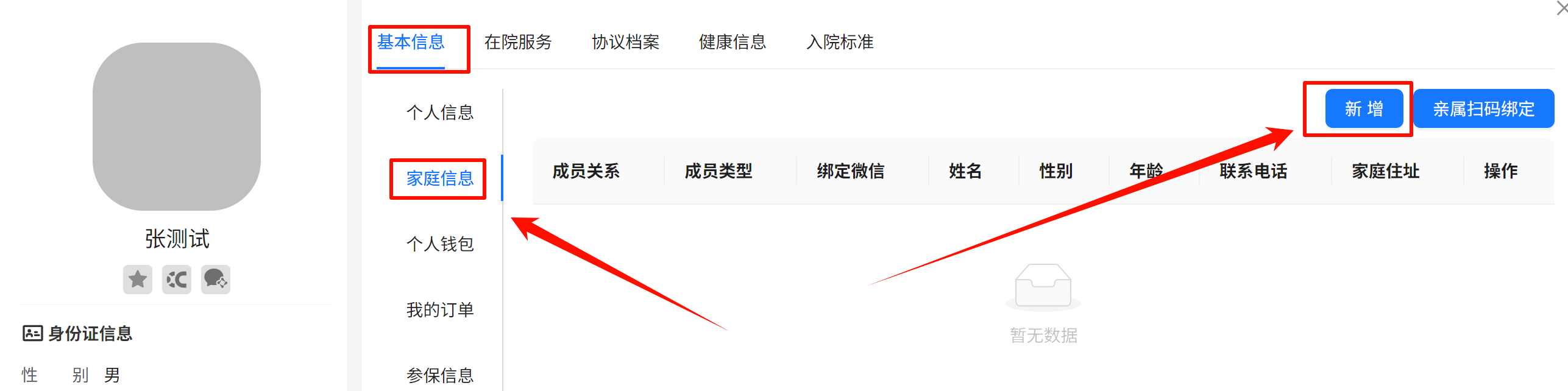 (1)录入长者信息以及家属信息,可以参照信息录入操作流程。