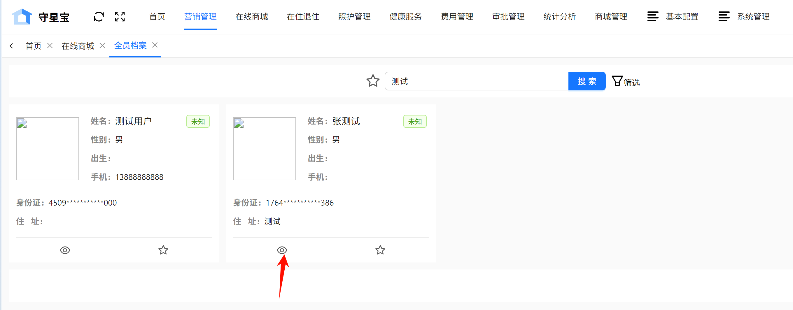 未入院的人员只会在全院档案有该人员信息,无法在入住退住功能项下查询到该人员信息。