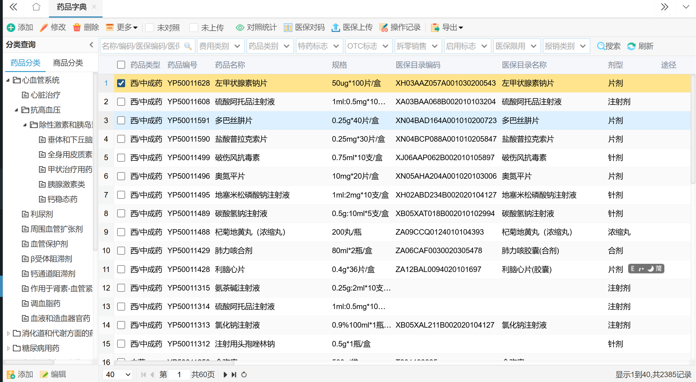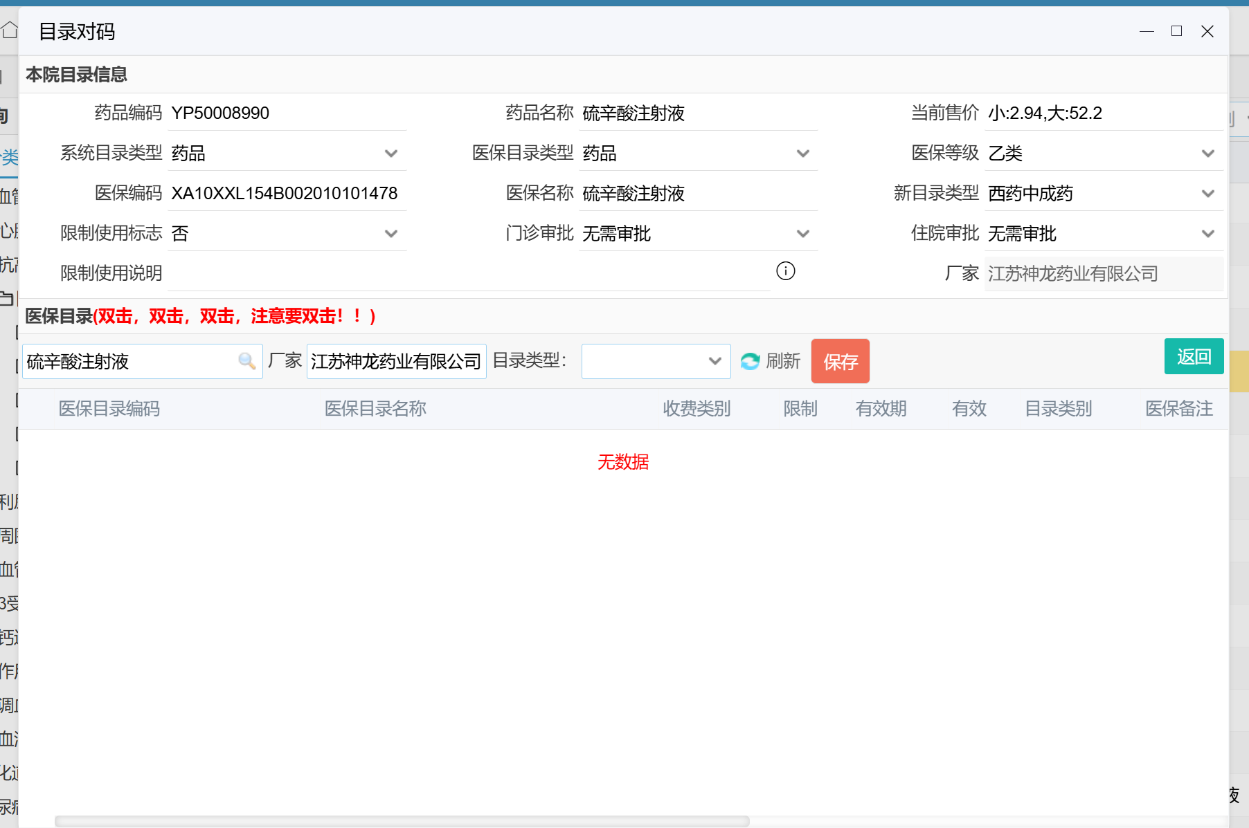 当前暂时不能搜索医保目录,医保接口已不提供查询接口,对码只能找医保局要Excel。