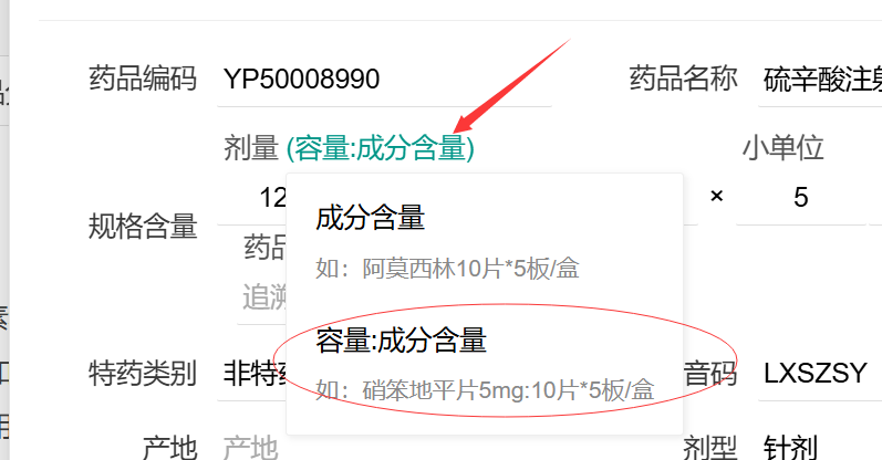 在快速搜索输入要修改的药品名称: 在搜索出来的药品打勾,然后点修改进入药品信息维护,在药品规格中修改药品来货时的规格,区分中小单位