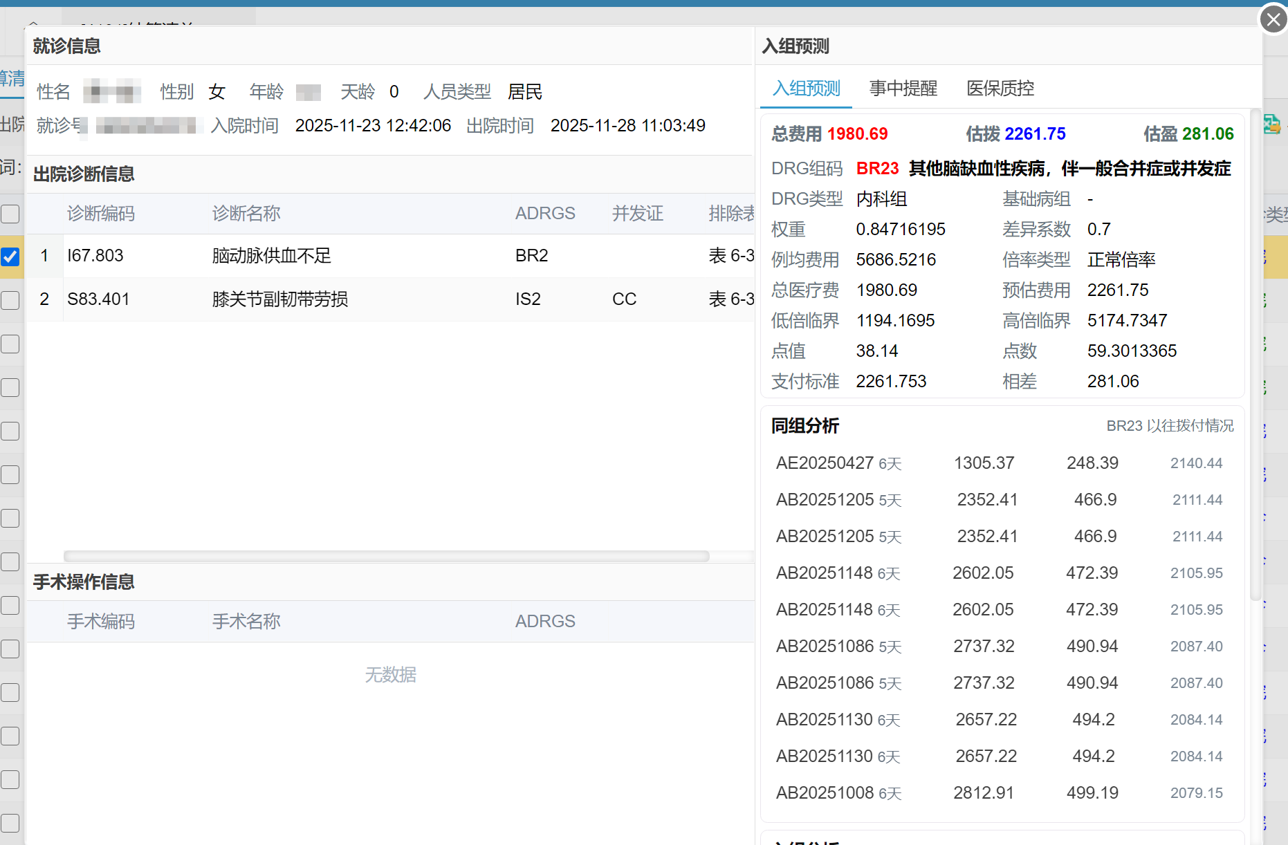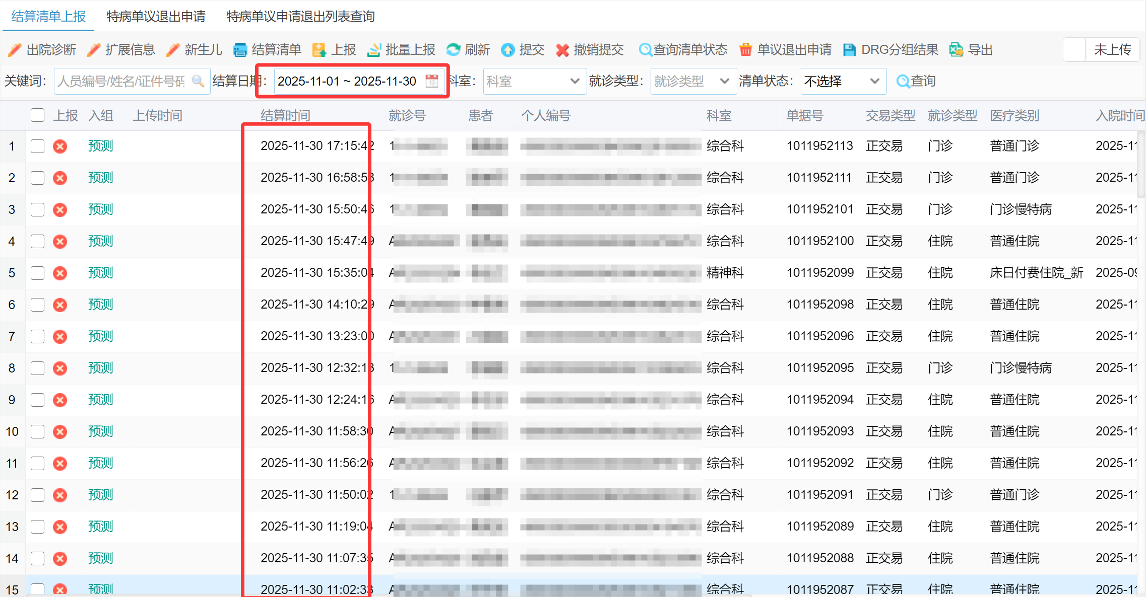 搜索出来的数据,包括门诊与住院的结算信息,不包括自费患者的结算信息。