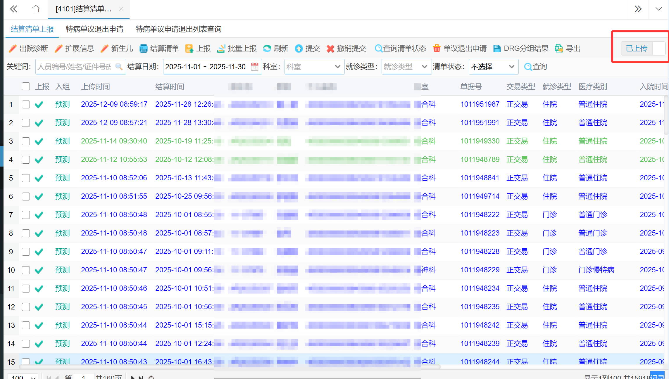 医保要求结算之后就要上传清单,但在次月15号之前,必须要全部上传,即使上传了,也没有影响,在没有提交之前,可以反复上传。