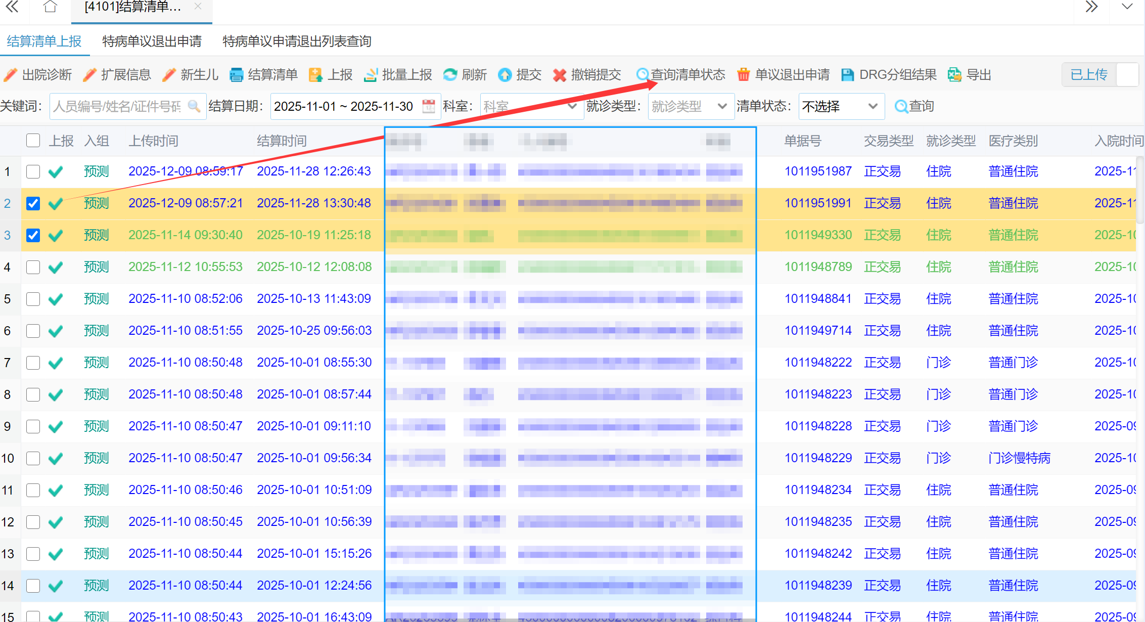 查询清单状态,手动查询,医保没有推送审核结果到HIS系统的功能。