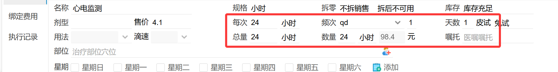 比如心电监测,是按小时收费的。