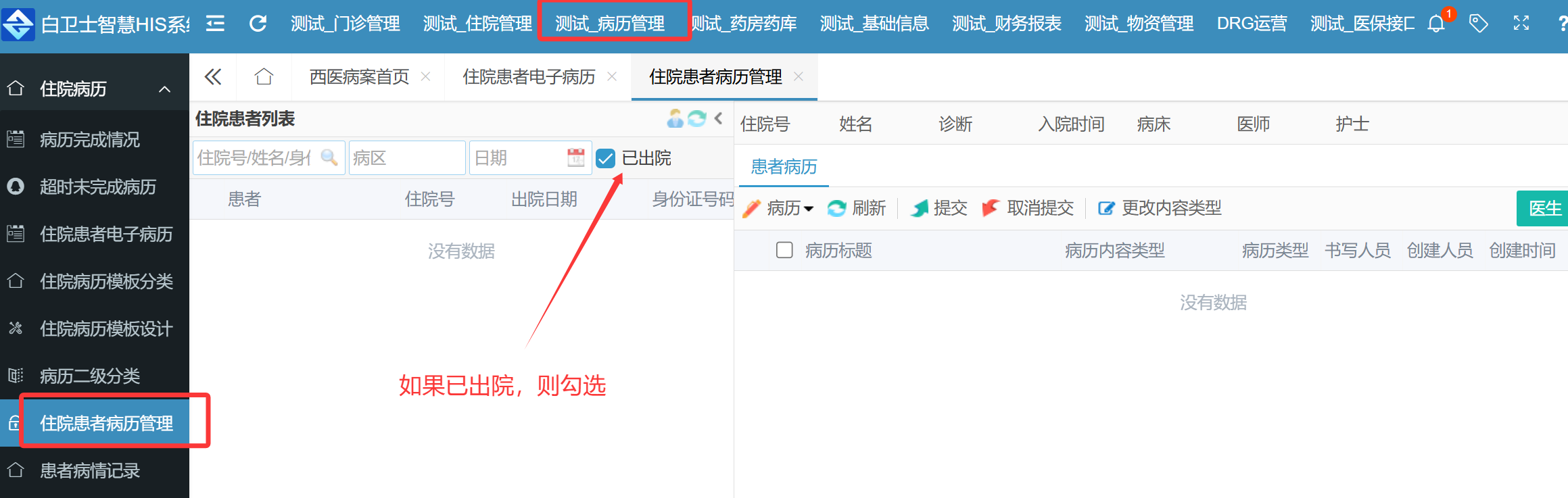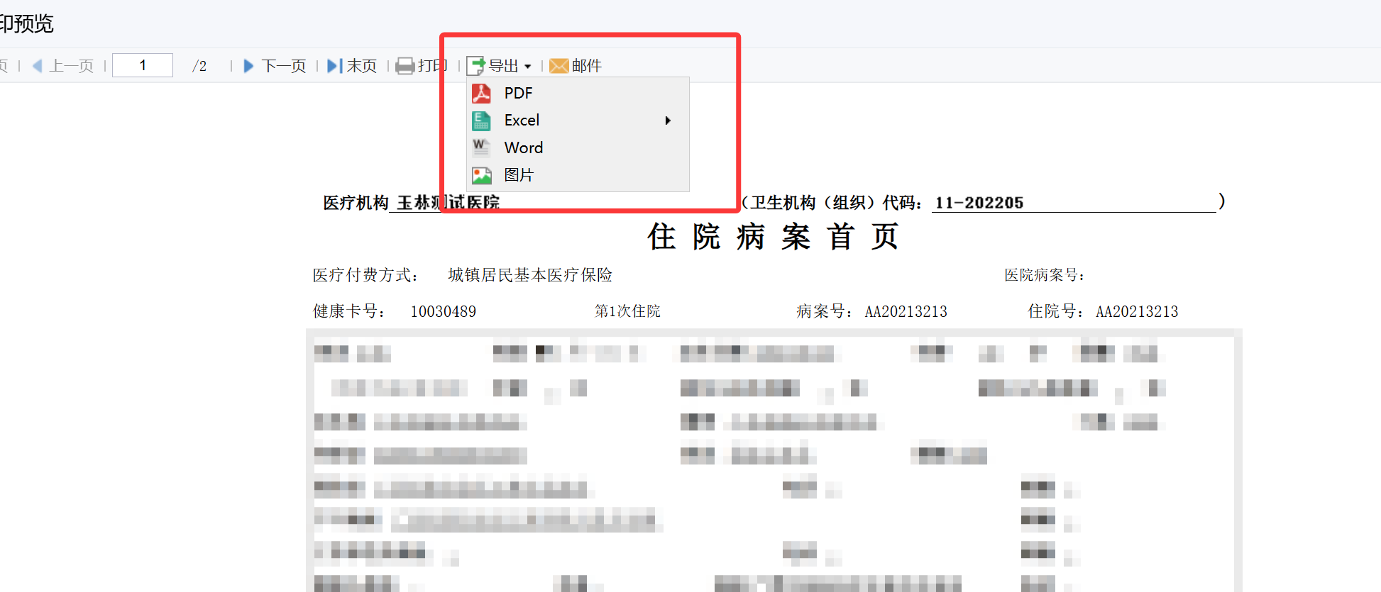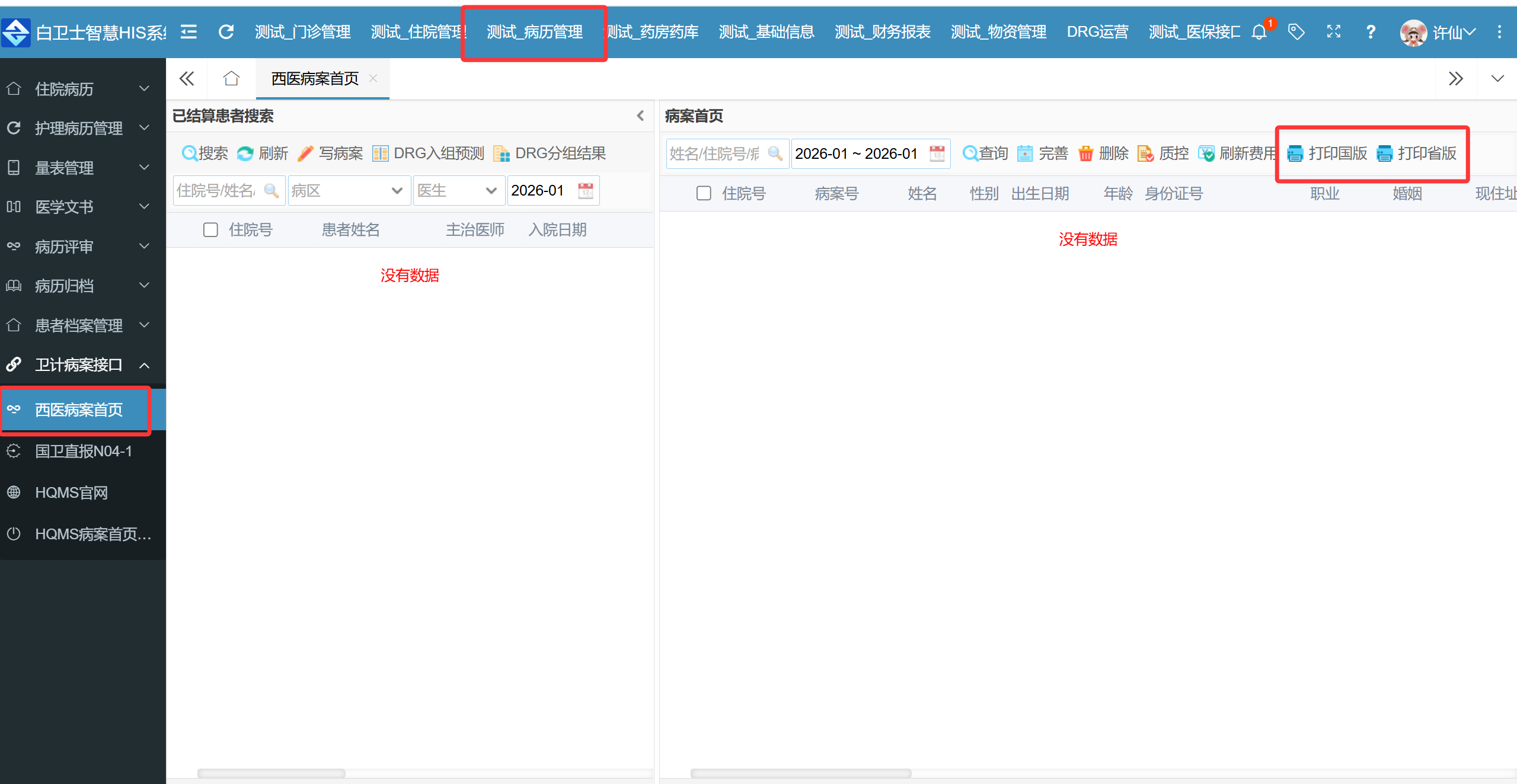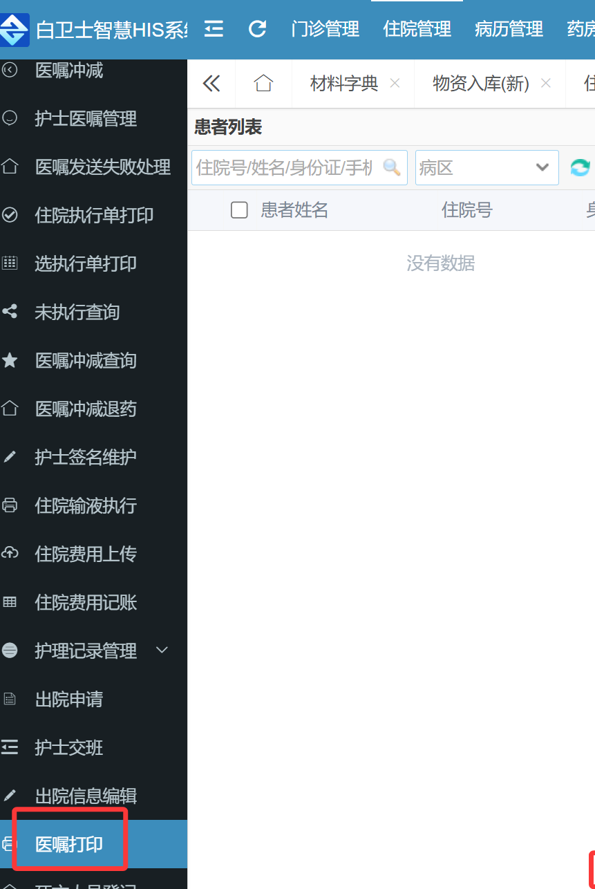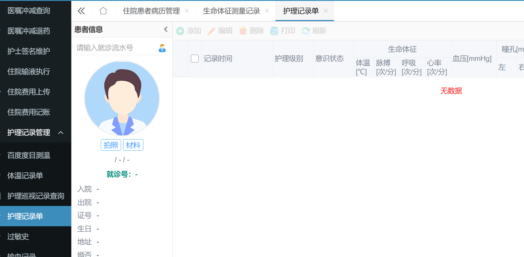 住院管理-护士工作站-护理记录管理-护理记录单-打印