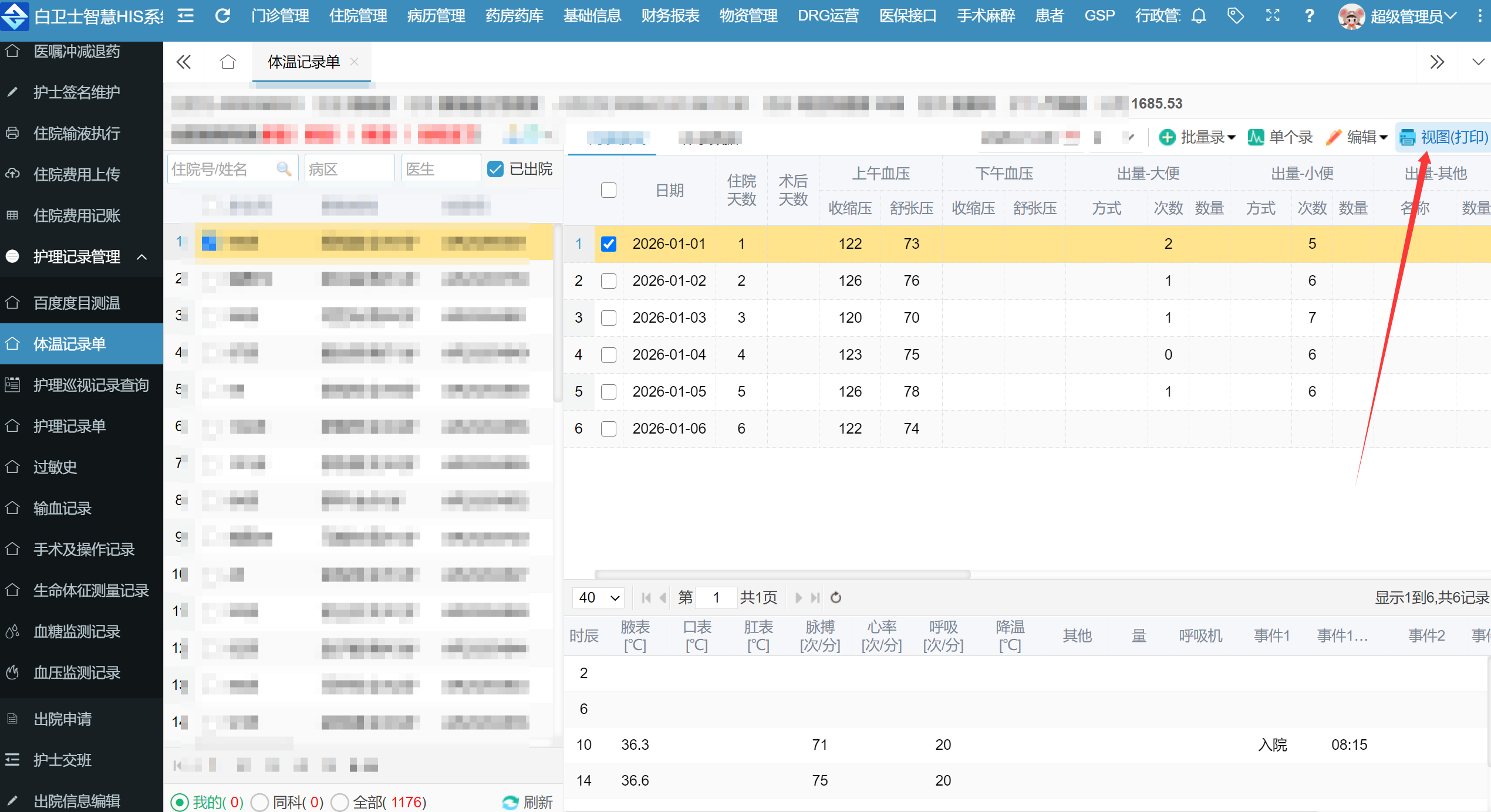 住院管理-护士工作站-护理记录管理-体温记录单-视图(打印)